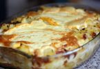 Gratin de pommes de terre, chorizo, tomate et béchamel