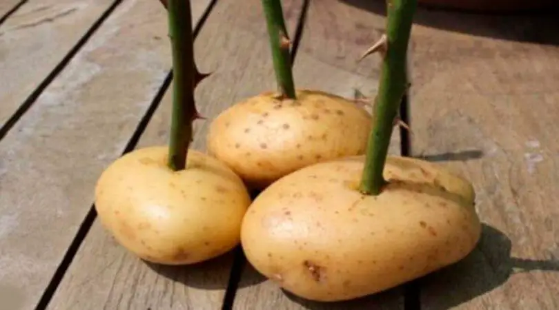 Obtenez un rosier à partir d’une tige de rose et d’une pomme de terre
