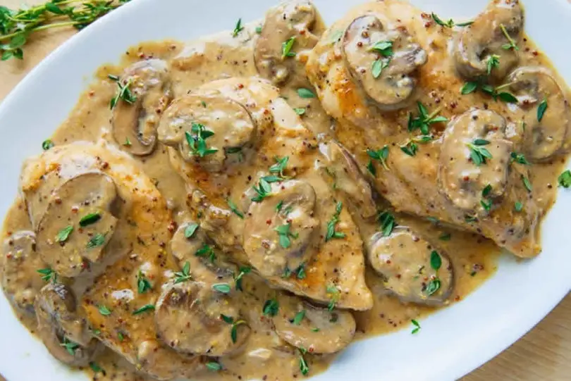 Poulet à la moutarde et aux champignons, un délicieux plat de poulet pour votre repas principal.