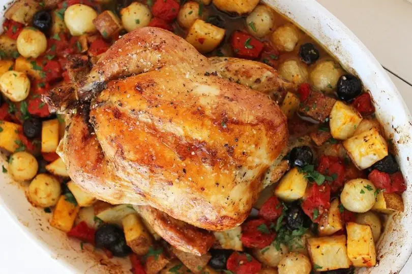 Poulet rôti aux pommes de terre et olives