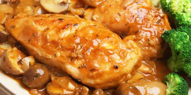 Vous pouvez servir votre poulet aux champignons bien chauds.